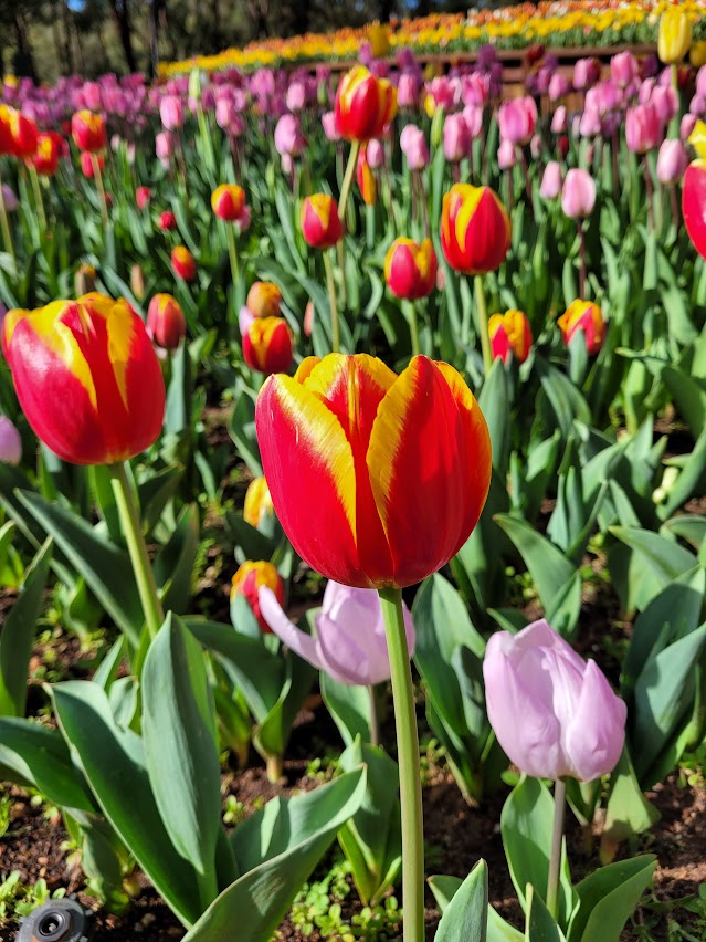 This year the Araluen team and hundreds of volunteers have planted 120,000 Tulips along with thousands of other spring blooms. The team has strategically planted early, mid and late flowering Tulips so that there are plenty in bloom throughout the It’s Yates Springtime Festival.